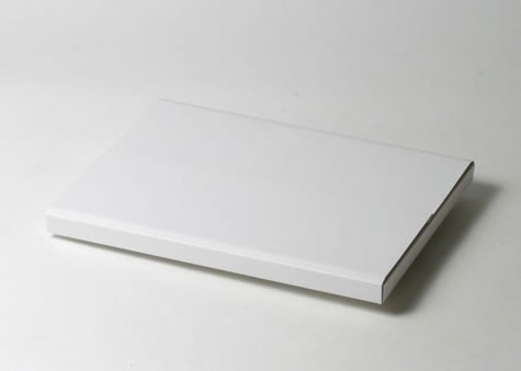 3センチ以下の冊子等の薄い物向けの箱で品物を箱中央に乗せ、四方から包み込むように閉じ左右の長辺の中央で付き合わせてテープを貼って封かんするタイプの箱。 テープは中央に1回貼る形になり梱包作業性は良い。